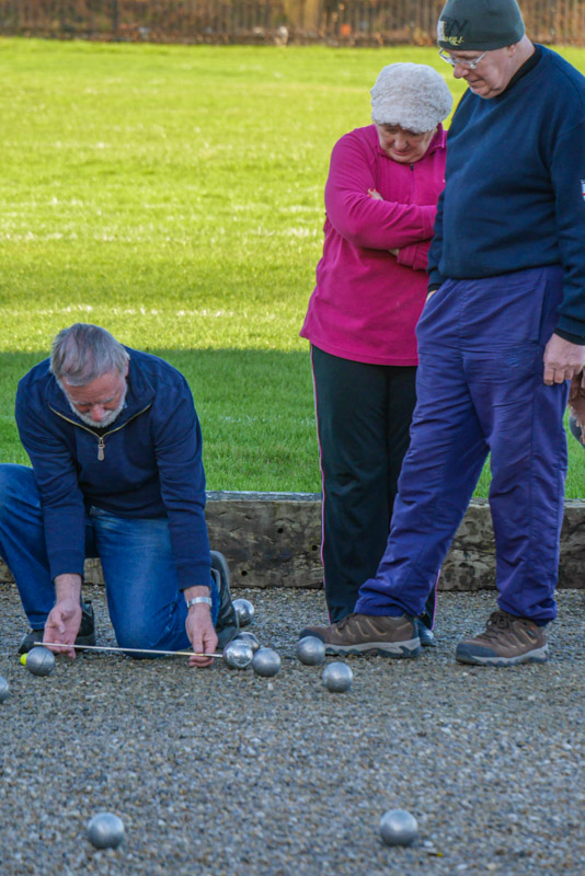 Once all boules on both teams have been thrown, this is known in French as a ‘mène’ which loosely translates as ‘end’ or ‘round.’ It’s then time to work out the score so far. The winning team scores one point for each of its boules that is closer than the opposing team’s closest boule.